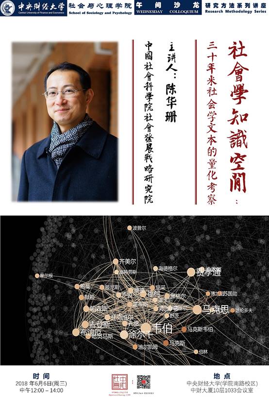 304永利集团官网入口3044午间沙龙2018年春季学期第八期,暨“研究方法系列讲座”第三讲,邀请到中国社会科学院社会发展战略研究院副研究员陈华珊老师,与我们分享《社会学知识空间——三十年来社会学文本的量化考察》。欢迎各位老师、同学和朋友参加!